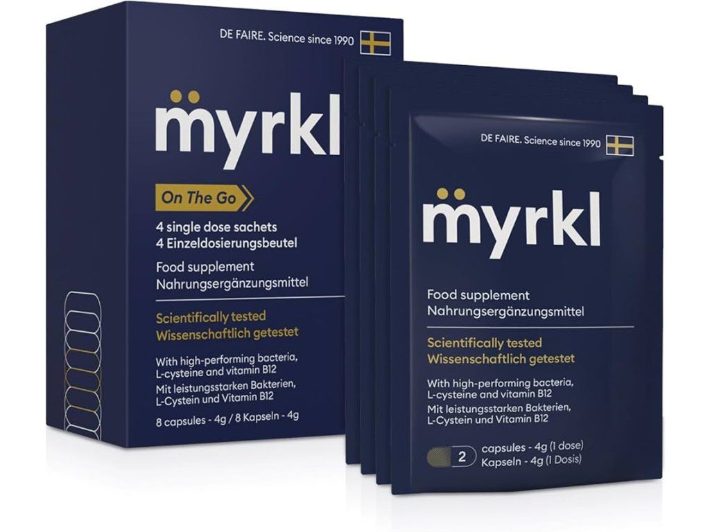 Jedna dávka Myrklu obsahuje několik milionů CFU (kolonie tvořících jednotek) bakterií Bacillus coagulans a Bacillus subtilis. Tyto bakterie procházejí žaludkem neporušené až do střev. V trávicím traktu, kde jsou prospěšné pro střevní mikroflóru, se množí každých 20 minut a vytvářejí enzymy pro rozklad alkoholu. Dále obsahuje: